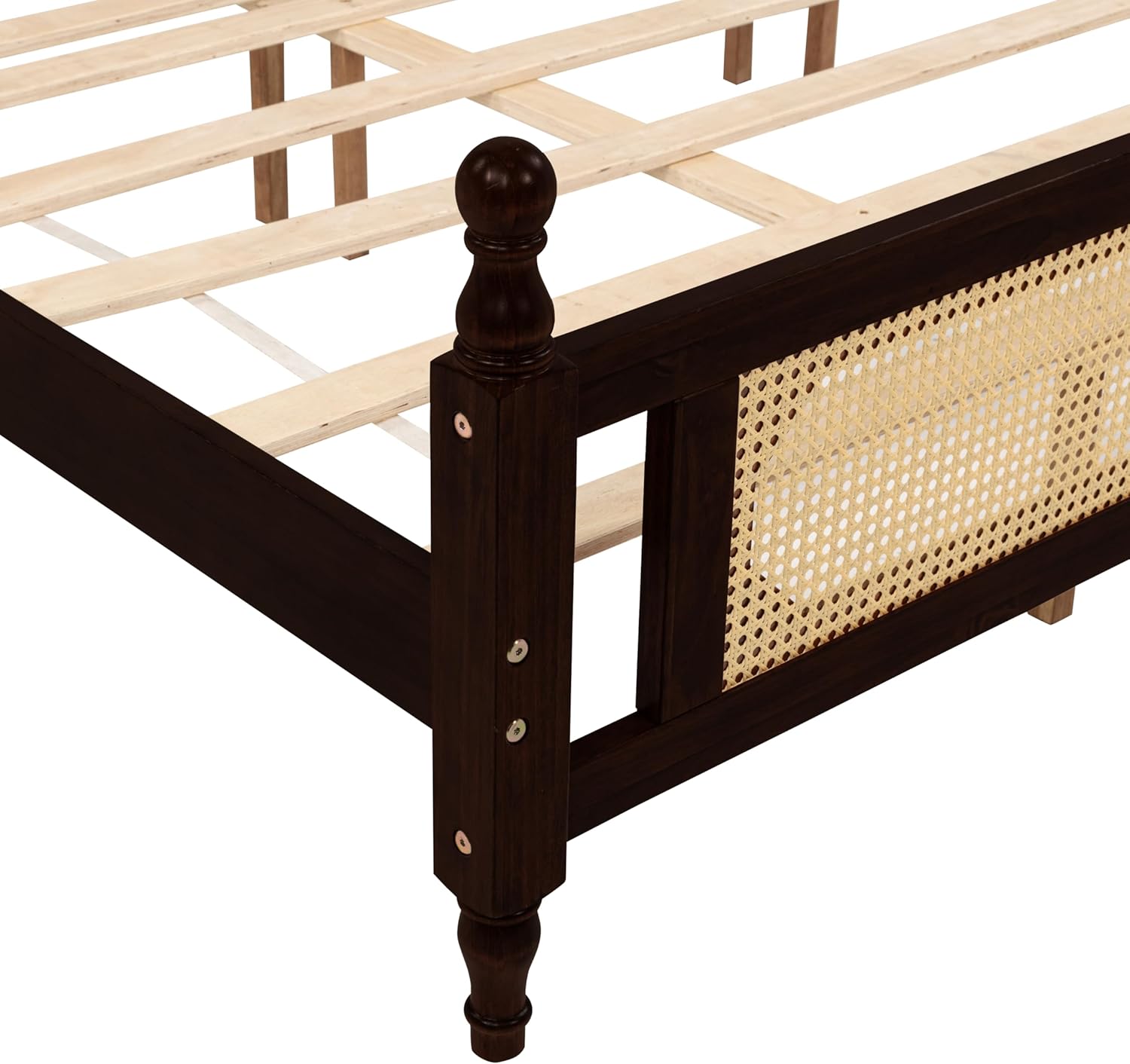 DescriptionProduct Type Bed with Rattan Headboard & FootboardSize-kingMaterial (main)-Pine wood, Plywood, PVCNumber of Slats-10 pcsSpring Box-No needAssembly Required-YesManual and Hardware-YesTechnical DetailsOverall Product Dimension-84.6 ” x 78.5” x 42.4”Overall Product Weight-70.5 lbsPackage Details-Please refer to the SpecificationBed Weight Capacity-500 lbsSuggested Mattress Thickness-6 inches or less