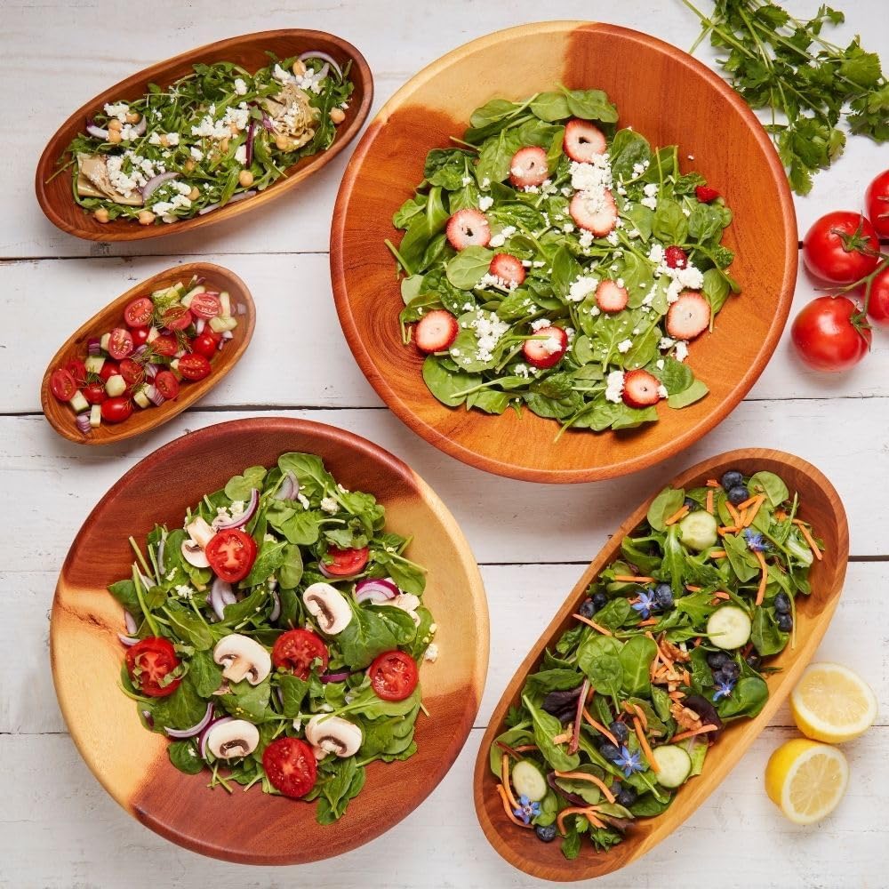 Elevate your dining experience with this stunning handcrafted mahogany wood bowl, perfect for serving salads, pasta, fruits, and more. The generous size of bowls make it ideal for family gatherings and entertaining guests. Each bowl showcases the natural beauty of mahogany wood with its rich, warm tones and distinctive grain patterns. The deep, curved design allows for easy mixing and tossing of ingredients while the smooth, polished finish adds an elegant touch to your table setting. These versatile bowls are excellent for both everyday use and special occasions, bringing a touch of artisanal craftsmanship to your dining space. The substantial size accommodates large portions, making them perfect for serving family-style meals or as a striking centerpiece filled with fresh fruit. Hand-carved with attention to detail, each bowl features graceful proportions and a timeless design that complements any décor style. For best care, hand wash and occasionally treat with food-safe wood oil to maintain its beautiful appearance.