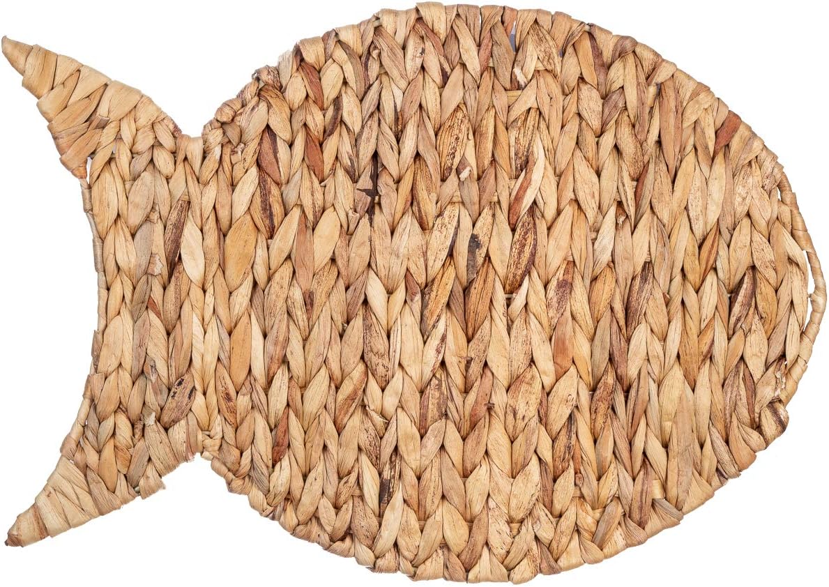 Enhance your dining space with this set of 4 woven placemats, handcrafted from sustainable water hyacinth. Measuring 12""x17"", these natural rattan placemats add texture and coastal charm to any table setting, perfect for beach decor, farmhouse kitchens, or outdoor patios. Their sturdy design offers excellent protection for your surfaces, doubling as chargers for dinner plates or table mats for daily meals and special occasions. The elegant fish-shaped design creates a unique nautical theme, making these placemats ideal for both casual and festive dining environments. Whether you're hosting a beach-themed event or enjoying a summer dinner on the patio, these boho placemats bring warmth and a natural aesthetic to your space. These placemats for round table settings coordinate well with various decor styles such as jute placemats, braided placemats, round woven placemats, and coastal placemats. Their eco-friendly composition ensures durability and reusability, while their neutral tone complements most dinnerware and table chargers. Suitable for indoor or outdoor use, these woven placemats set of 4 are also versatile enough for use as plate mats, trivets, or even wall decor. Perfect for kitchen tables, dining rooms, or outdoor placemats for patio table setups, this set combines function and beauty for year-round enjoyment.