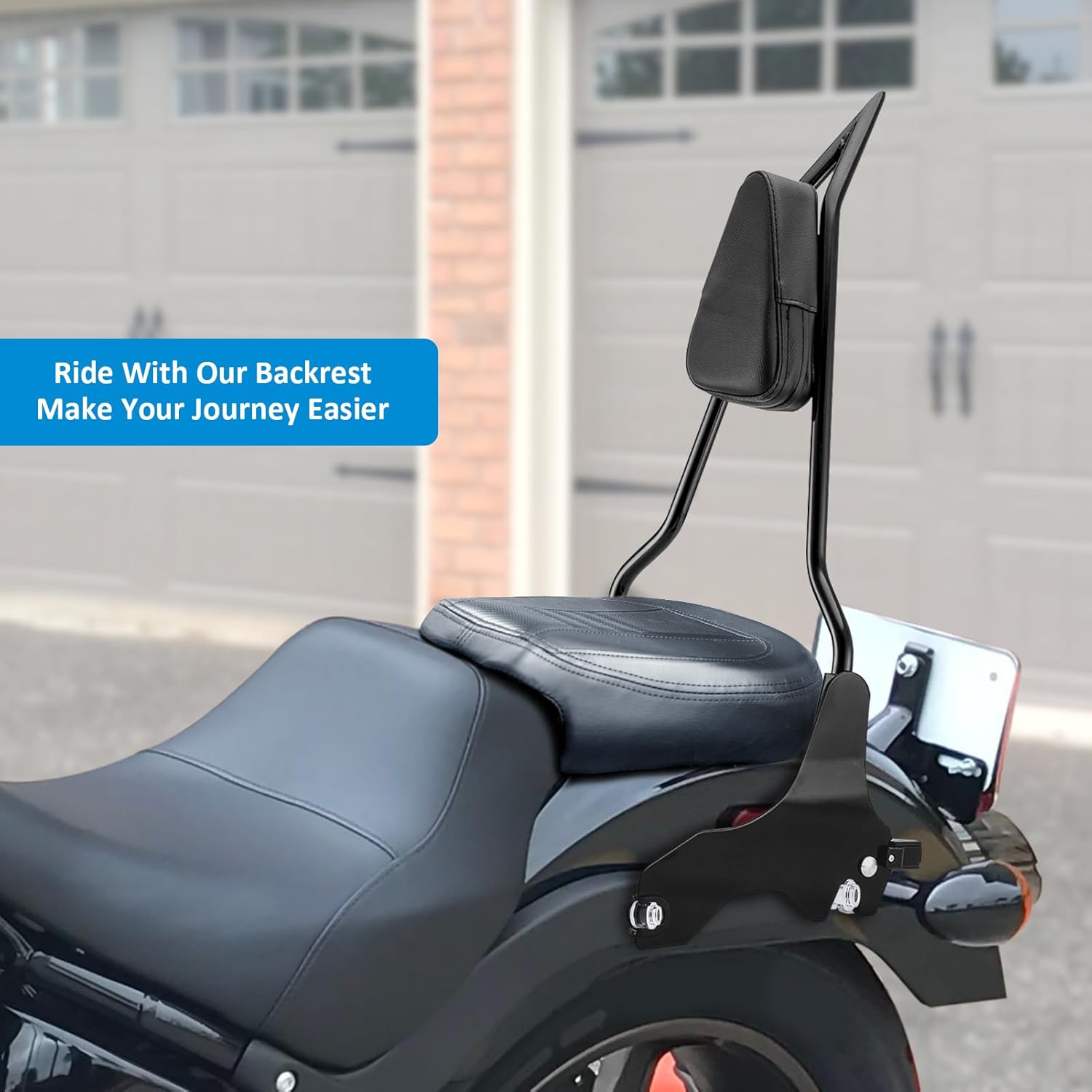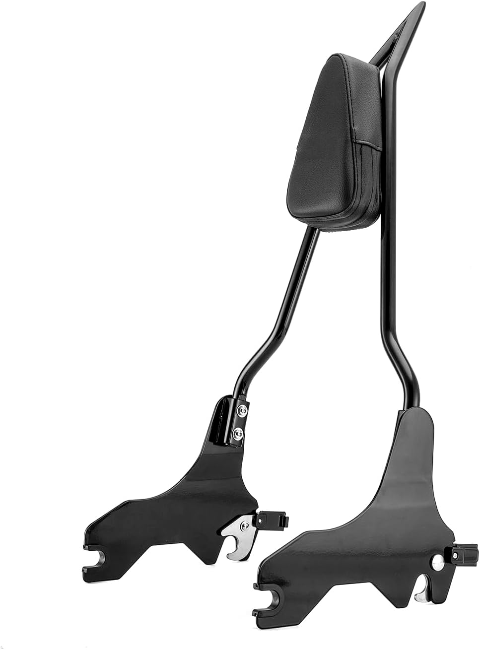 Fitment List Compatible with Harley Softail FLSB, FXLR,FXLRS, and FXLRST 2018-2025 models Equipped with Two-Up Seats Compatible with Sport Glide FLSB 2018-2021 Compatible with Low Rider FXLR 2018-2020 Compatible with Low Rider S FXLRS 2020-2024 Compatible with Low Rider ST FXLRST 2022-2024 Note: The Installation requires the purchase of an additional model-specific docking hardware kit. Note: Low Rider ST models Saddlebag your bike mounting docking cannot be installed sissy bar, Additional purchase required docking hardware kit. Specifications Item: Passenger Sissy Bar Material: Solid Steel Color: Gloss Black Height: 24.5"" Tube Diameter:0.63"" Style: Thick Tube With a Sharp Angle Process: black powder coated Pad Cushion Material: PU Leather and Polyurethane Foam Features 【Stylish Design】 Our quick-release passenger backrest has an innovative design, the upper part of the backrest is designed with sharp corners, full of vigor and aggressiveness. With its sleek and modern design, this adds a stylish touch to your motorcycle that will turn heads on the road. 【Durable Construction】 The motorcycle sissy bar is constructed from solid steel materials, It is high-strength and rust-proof, and black powder coated, can pass the 72-hour salt spray test. This sissy bar is built to withstand the rigors of the road and provide reliable performance over time. 【Comfortable and Supportive】 The tall backrest sissy bar provides a comfortable and supportive backrest for your passenger, reducing fatigue and increasing overall comfort during long rides. 【Installation and Package】 Simple bolt-on and quick detachable design, you can install it quickly and easily and back to the road at once. 【 Package Includes】 1 x Passenger Sissy Bar Backrest, 1 x Installation Instructions.