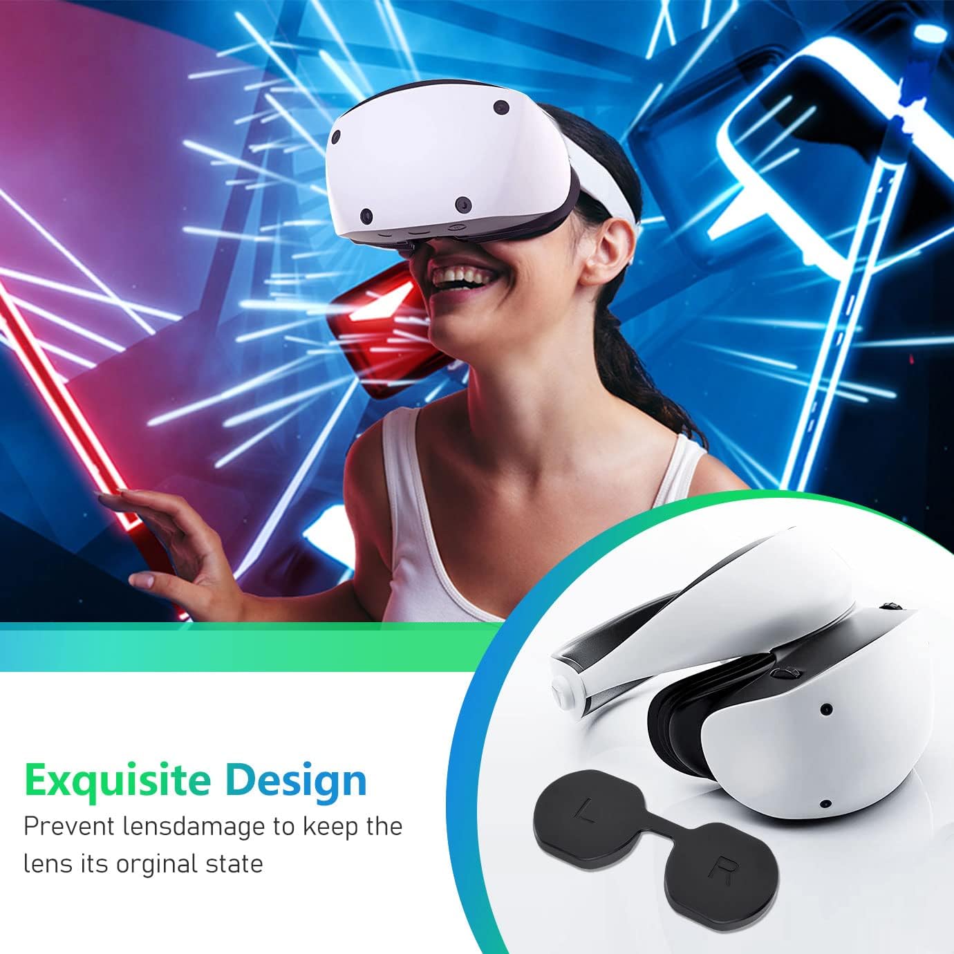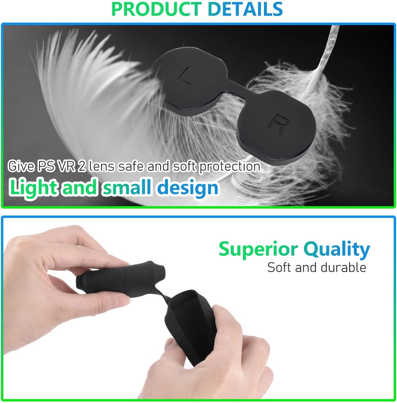 Specifications: 14 x10 x 1.5cm/ 5.51 x 3.93 x 0.59inches Material: High-quality soft silicone material Size: 13.8 x6 x 1cm/ 5.43 x 2.36 x 0.39inches Color: Black Package includes: 2*PSVR2 Lens Protector Cover
