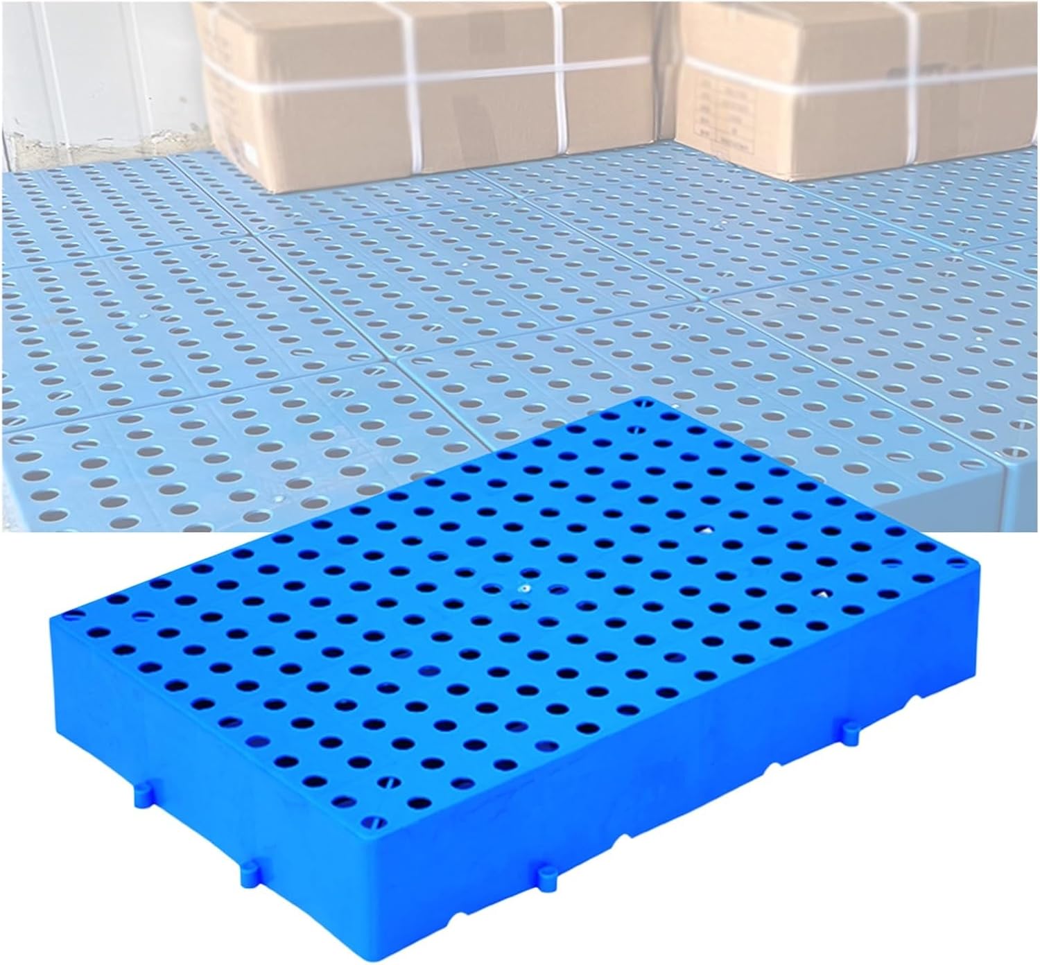 Brand : XPLKQXEFeature:The plastic pallet is made of HDPE raw material, and the surface is evenly covered with anti-skid particles, which has good anti-skid properties.The warehouse storage pads are brightly colored and have reinforced ribs on the back, which not only improves the stability of the plastic boards but also increases the load-bearing capacity of the pads.The grid platform pad is equipped with multiple drainage holes to effectively clear the accumulated water inside. Comes with splicing buckles, easy and convenient splicing, and can be used in a wide range of installations.Name: Breathable Grid Ventilation Pallet/Lightweight Floor Pallets/Polyethylene Pallet / Isolation Platform Pad Board/HDPE Breathable Grids Article Racks/Plastic Medium Size DisplayMaterial: HDPE raw materialColor: Black, BlueDimensions (L x W x T): 15.7x11.8x3.9in/40x30x10cm , 19.7x11.8x3.9in/50x30x10cm , 19.7x15.7x3.9in/50x40x10cm , 23.6x15.7x3.9in/60x40x10cm Cleaning: Rinse directly with waterFunction: Isolate moisture, warehouse displayUsage Scenarios: Warehousing, supermarkets, turnover, kitchen, garages, outdoor closets, storage rooms.Packing List:1/2/4/6/8/10pcs x Plastic palletAttention:If you have any questions after receiving the package, we will solve it for you in time
