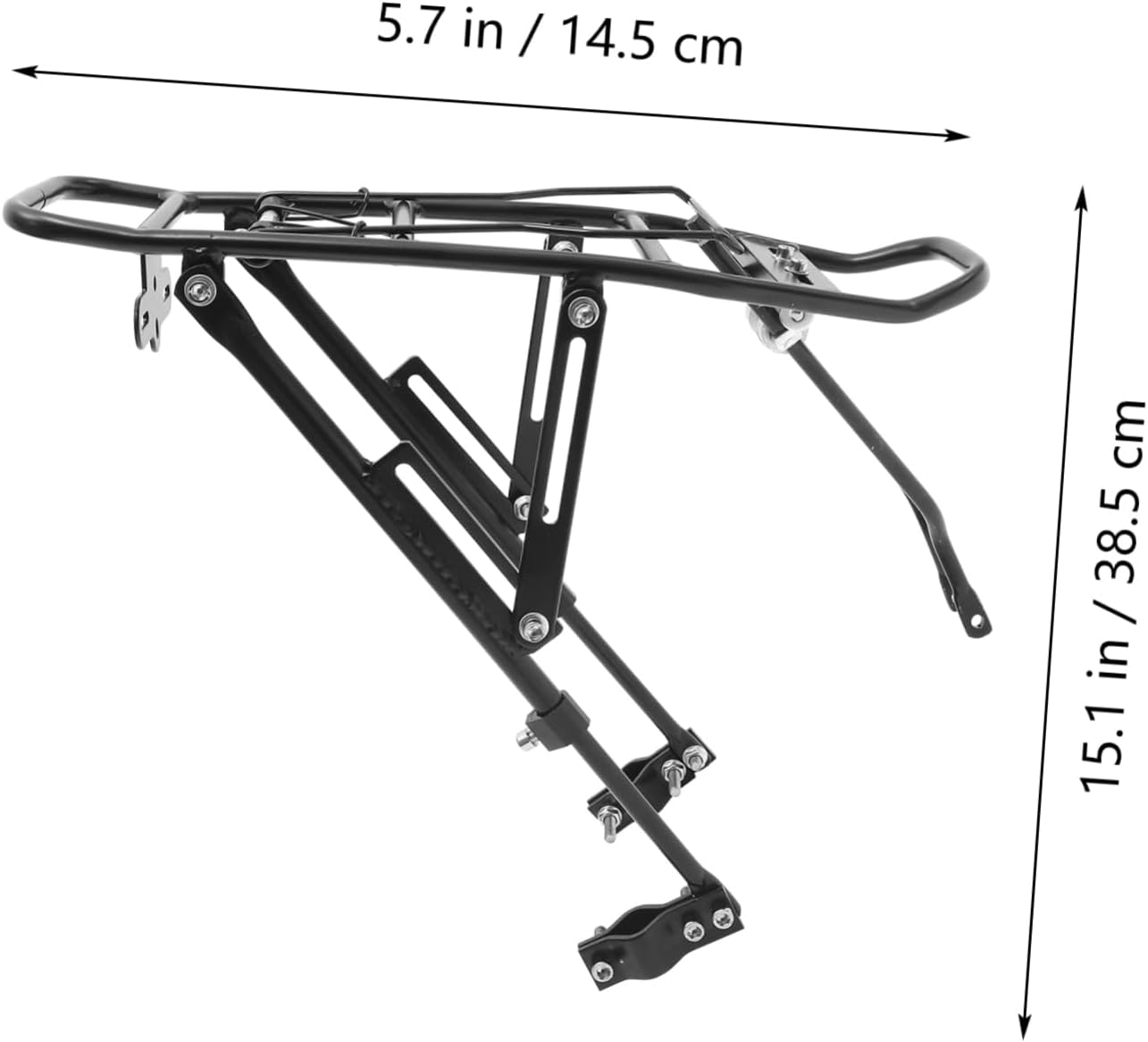 Package Include 1 x Bike cargo rack Characteristics - Color: Black cargo rack. - Material: Aluminum alloy walnut for rack. - Size: About 38.5x14.5x1 cm bike. - Adjustable, alomost universal, suitable for most bike, including mountain bikes, road bikes, etc bike basket rear. - for use with panniers, backpacks, baskets, etc bike rear rack. - Well made of and sturdy aluminum alloy, heavy-duty, durable for long hours bike accessories. - Easy installation and removal bike rear basket rack.Goods Descriptionmountain bike is suitable for most bikes and for use with panniers, backpacks, baskets, etc.Adjustable bike rack Are you looking a rear cycling rack? This cargo rack might be a for you! Made of alloy, it is heavy-duty and durable for use.bike basket rear A good and helpful companion for cycling!