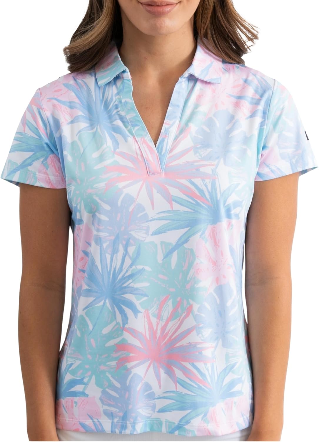 This polo is made with 95% polyester and 5% spandex, offering a blend of comfort and durability. To care for it, machine wash in cold water and tumble dry on low heat.