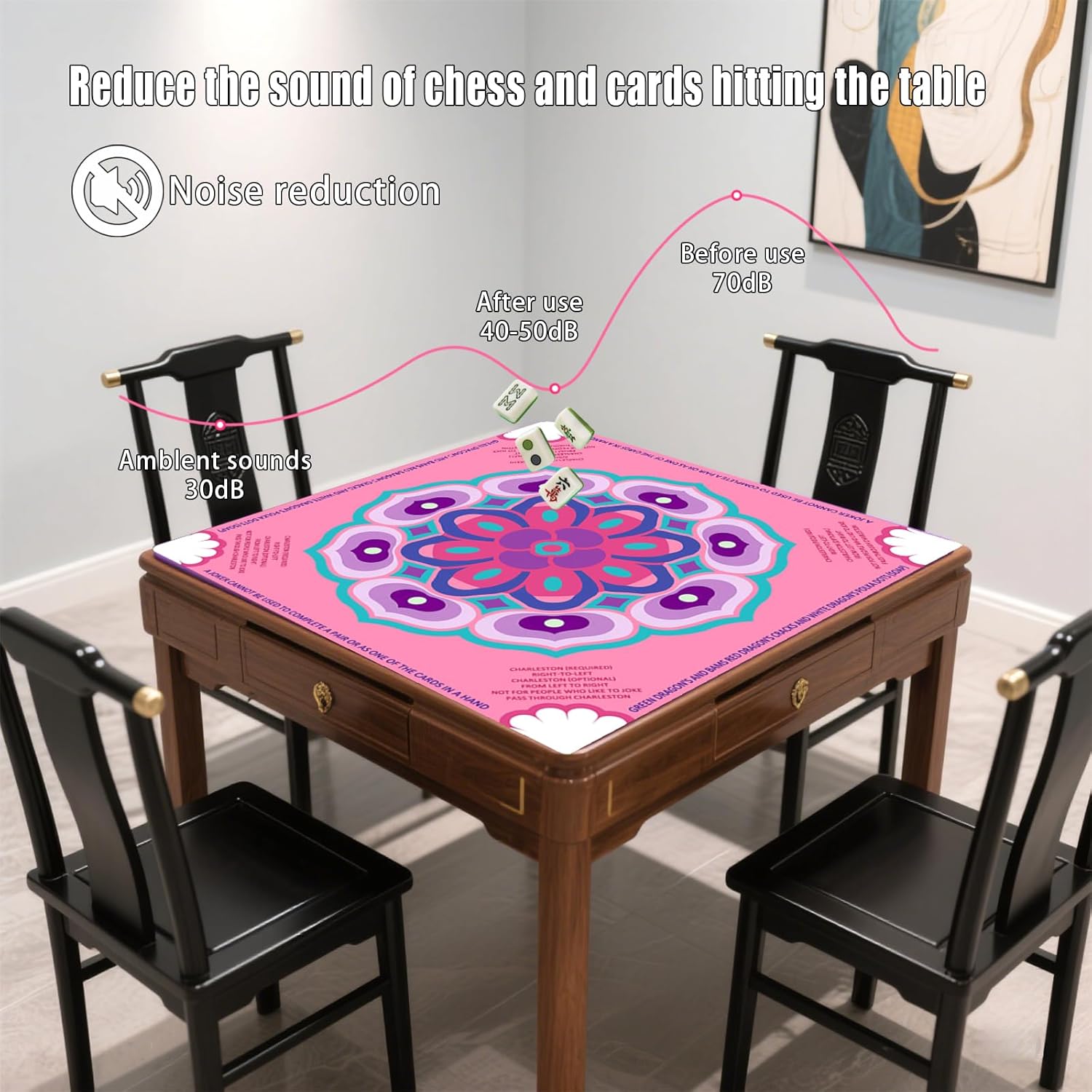 Superior Natural Rubber Construction Crafted from 100% natural rubber , this mahjong mat for table offers 3x higher wear resistance than PVC/fabric alternatives. Its dense, eco-friendly texture prevents tile slippage even during intense shuffling, while the non-slip base ensures stability on glass, wood, or metal surfaces. Professional Noise Reduction The 3mm thickened design absorbs 90% of tile-clicking noise, ideal for late-night games or noise-sensitive environments. Unlike thinner mats (2mm), YUEWO’s mah jongg mat maintains structural integrity while reducing disturbances. Lock-Stitched Durability & Portability Reinforced with double-layer lock-stitched edges, this mat resists fraying and deformation after 3,000+ folds. Weighing only 0.95kg (2 lb), it rolls compactly for travel or storage, saving 80% space compared to rigid bamboo mats. Multi-Functional Design Beyond mahjong, use it as a poker table cover, puzzle mat, or spill-resistant dining protector. The waterproof surface wipes clean effortlessly, eliminating the hassle of fabric or bamboo maintenance. Modern Aesthetics Available in pink, green, and purple, these mahjong mats blend seamlessly into contemporary interiors, offering style and practicality, Complies with 32-inch standard sizing for Chinese/Western mahjong rules Material: 100% Natural RubberSize: 32"x32" (81x81 cm)Thickness: 0.12" (3mm)Edge Finish: Double-Layer Lock-StitchingWeight: 0.95kg(2 lb)Care: Wipe with damp cloth; air dry