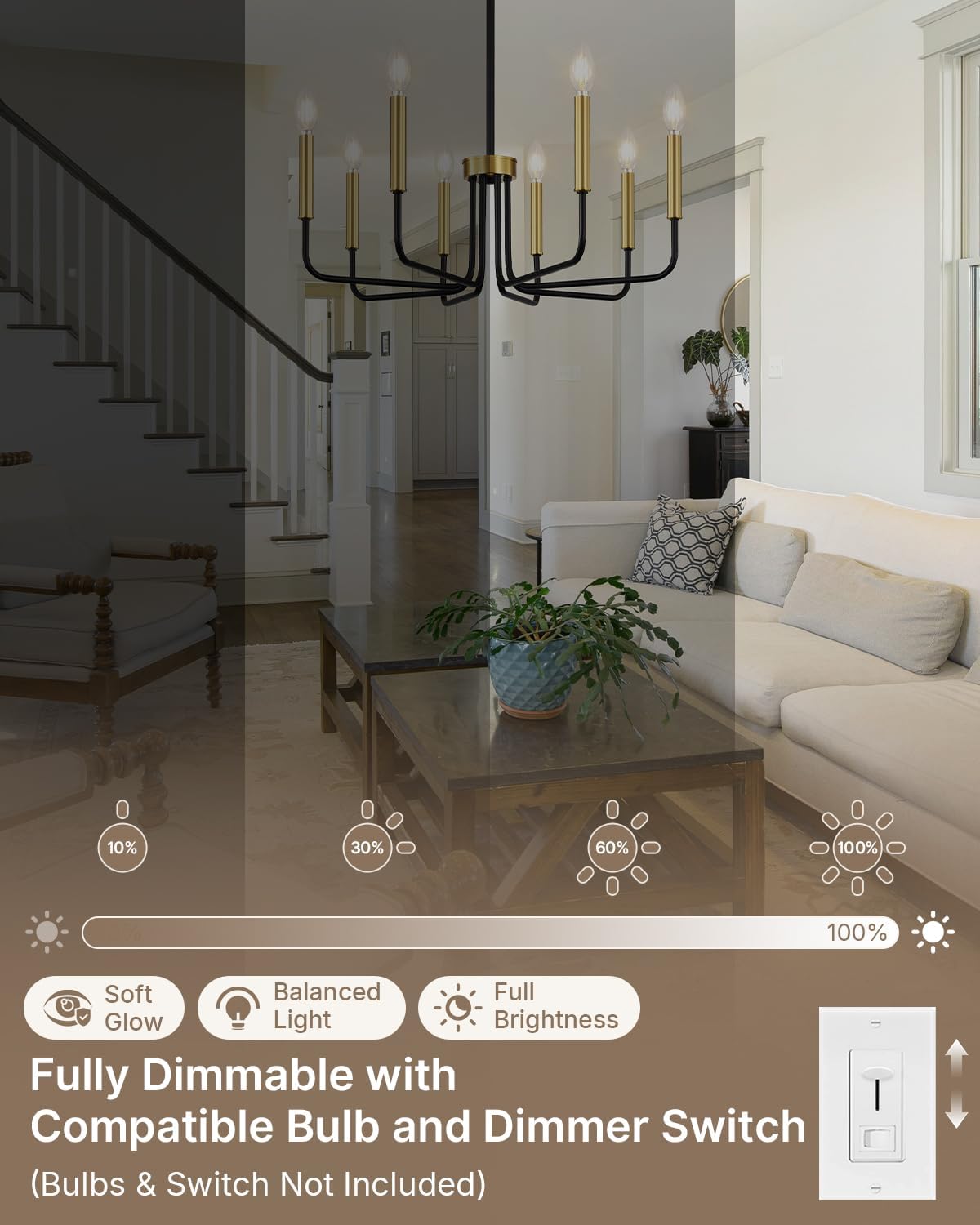 8 Light Black and Gold Chandeliers for Dining Room Lighting Fixtures Hanging, Modern Farmhouse Chandelier for Entryway, Foyer, Staircase, Kitchen and Living Room