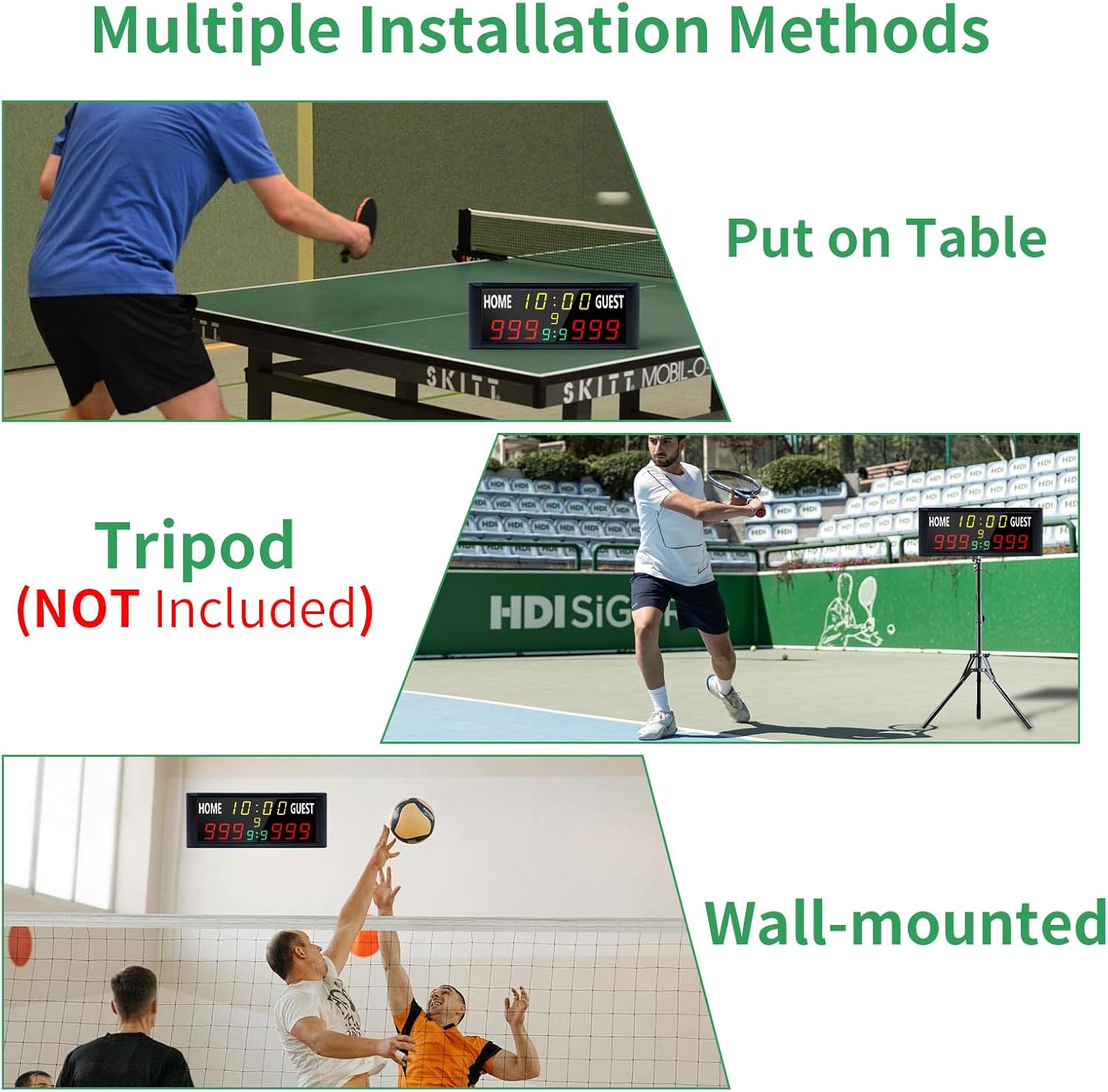 YZ 16” Large Electronic Scoreboard with Remote, Bright LED Scoreboard for Outdoor Games, Digital Scoreboard with Timer Clock, Portable Score Keeper for Football/Basketball/Cornhole/Volleyball