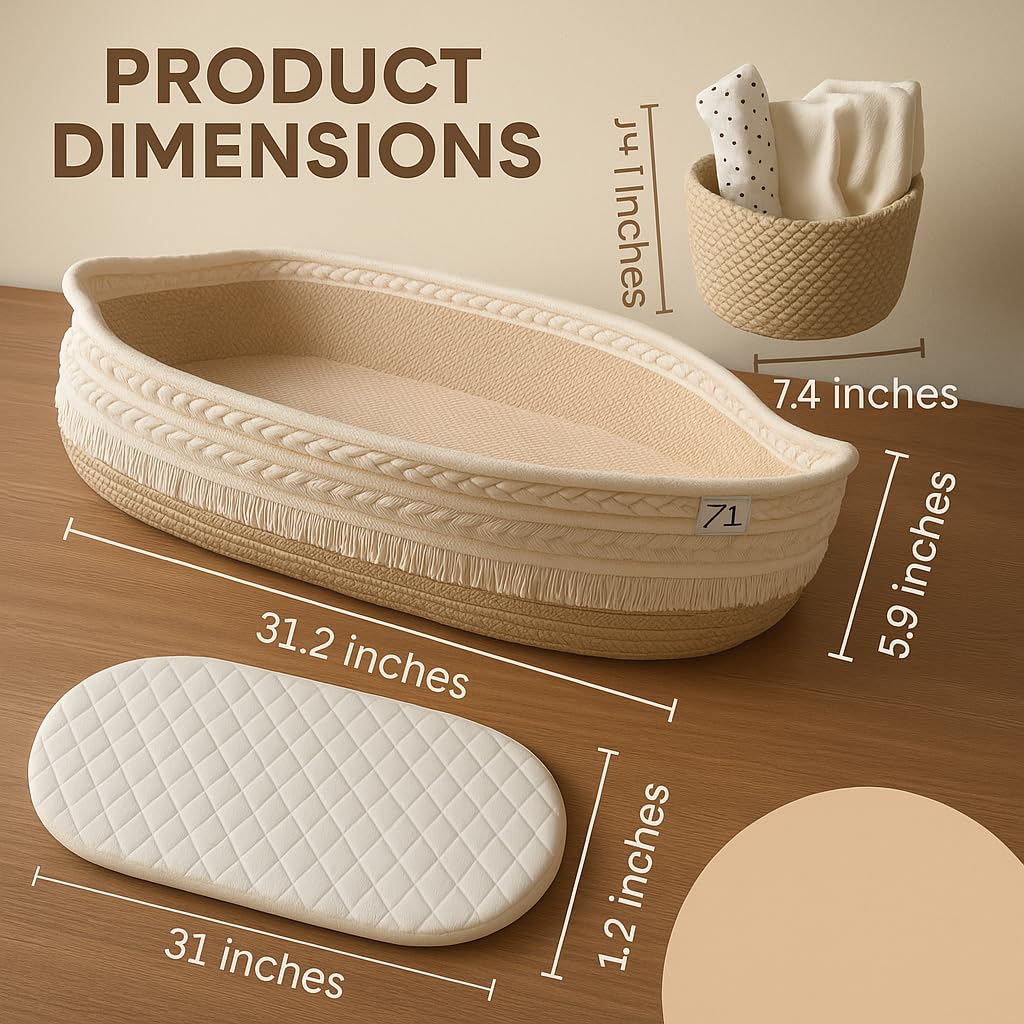 | Additional product features | Bonus Diaper Caddy – Keeps essentials like and diapers organized., Multiple Items In The Package - All you need for your newborn, Perfect Baby Gift – Comes with blanket, cover, and cotton bag in one beautiful set., Portable & Lightweight – Ideal for travel or small-space living., Waterproof Changing Pad – Soft, removable, and easy to clean. |