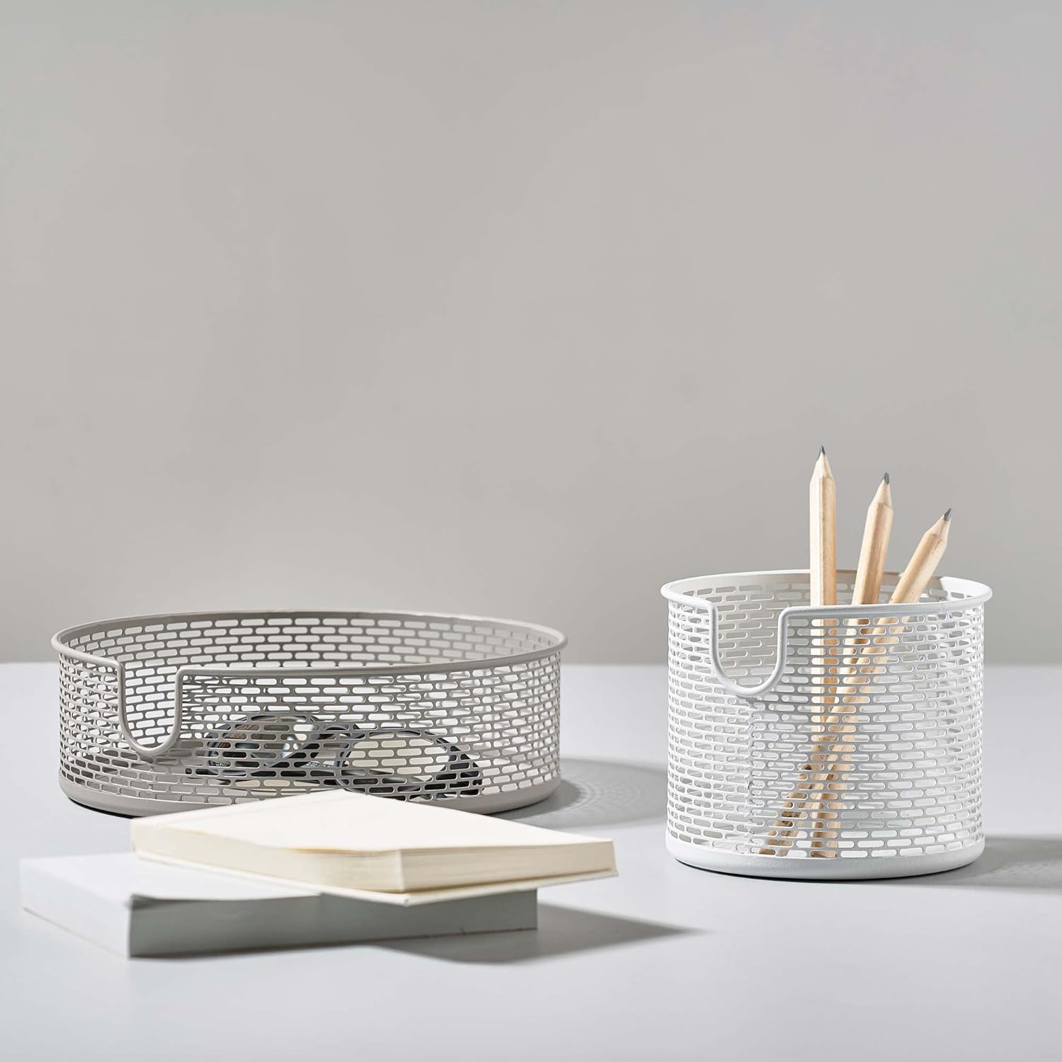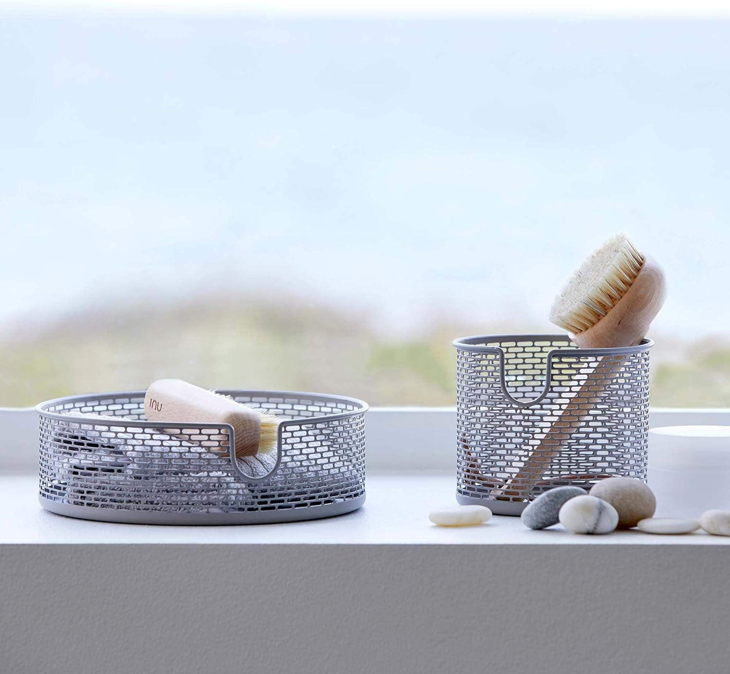 The Zone metal basket organizes makeup, cotton wool pads, creams, hair accessories to your bathroom table or shelf. The basket design is mixed with metallic masculine and feminine arch. They make ideal gifts for design enthusiasts and freaks.