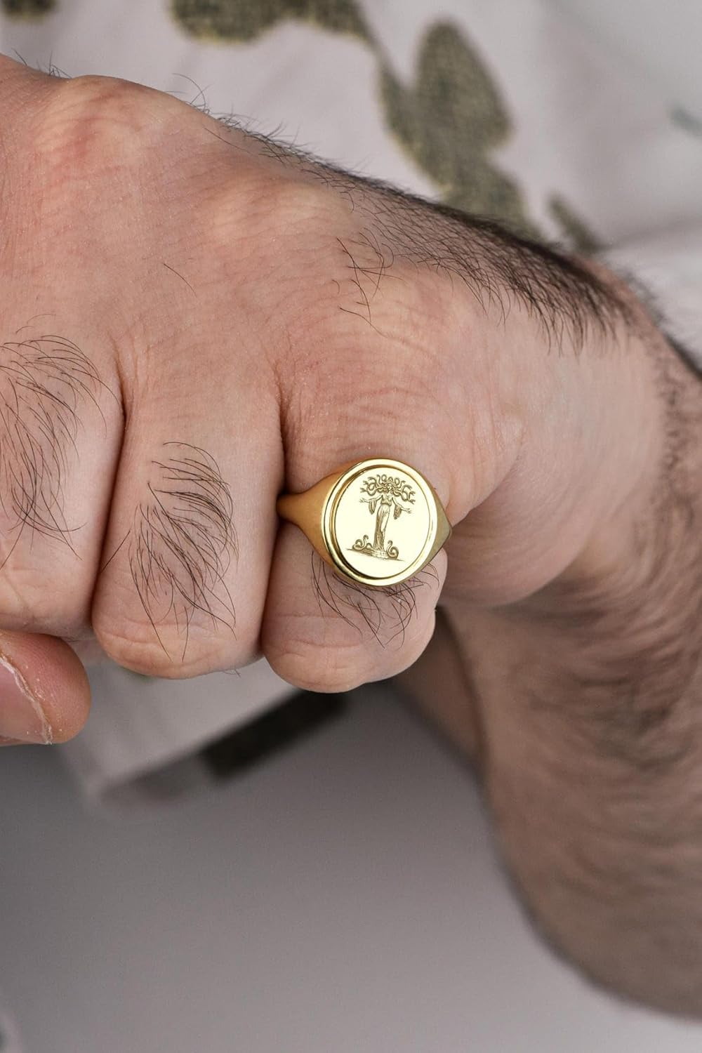 ☀️ Presenting our Medusa Signet Ring — where art meets timeless craftsmanship. A treasure of artisan beauty, this oval masterpiece is handcrafted from Brass, adorned with premium Gold plating, and perfected with a sleek 3mm band that enhances comfort and style. ✨ The 15x13mm face reflects divine geometry and rich symbolism, representing confidence, balance, and self-expression. Available in sizes 5US -12.5US, this ring transitions effortlessly from daywear to celebration nights. Whether worn solo or layered, it defines sophistication, elegance, and power. 💖 Indulge in the heritage of craftsmanship and the allure of modern luxury — your story deserves nothing less.