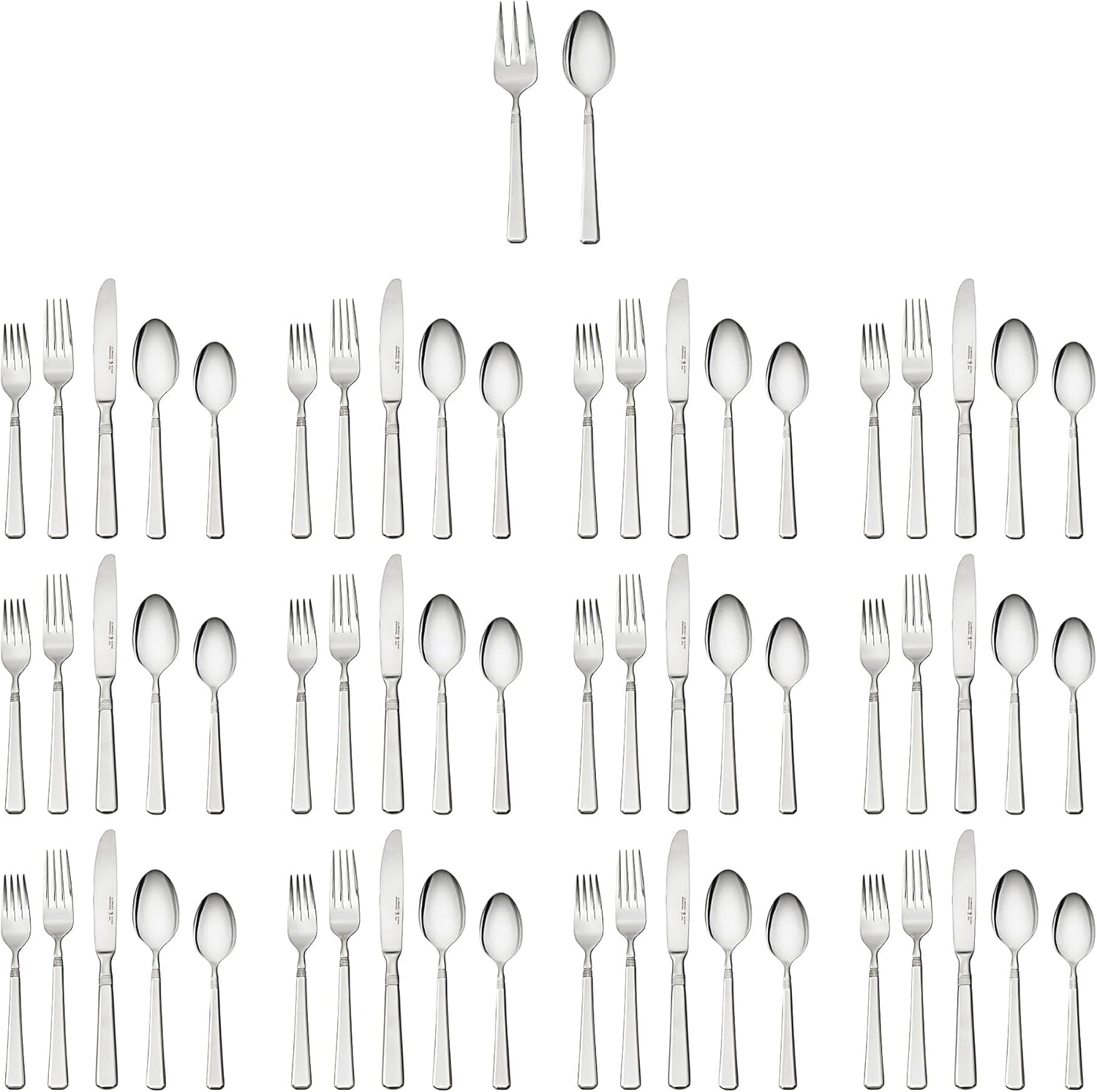 With timeless good looks and the renowned craftsmanship of Henckels, the Metrona flatware set is the perfect match for every meal, from hasty breakfasts to grand holiday feasts. Featuring an octagonal tip, banded neck and the polished glow of 18/10 stainless steel. Zwilling J.A. Henckels flatware is heavy gauge weight, produced from 18/10 stainless steel. The 18% chrome provides for maximum corrosion resistance and the 10% nickel gives each piece a brilliant finish. Other products that do not claim to be produced from 18/10 stainless steel or that use 18/0 stainless steel do not offer these benefits and can corrode in a short time of use.