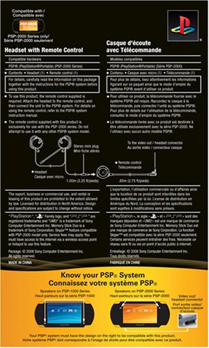 • Compatible with PSP-2000 systems only and requires PSP headset with remote control